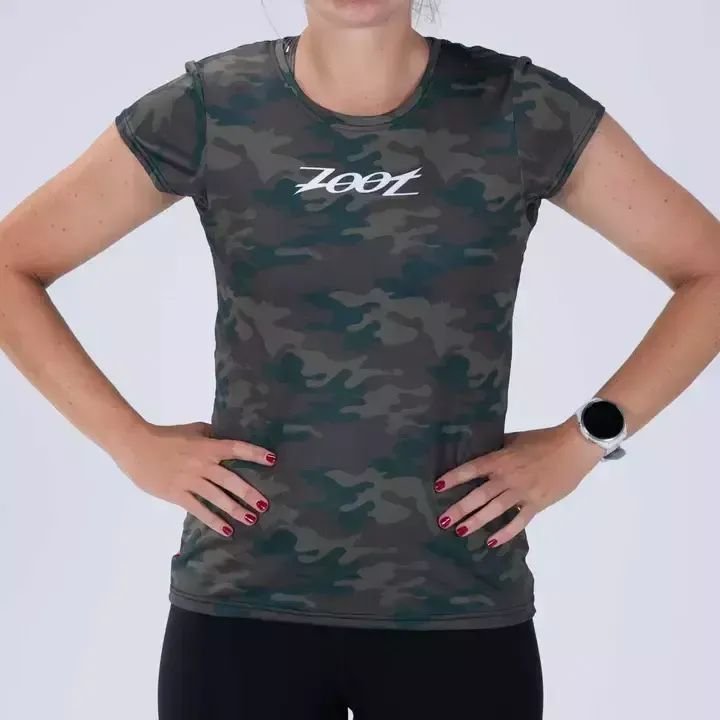 Desenvolvida para corredoras exigentes, a camiseta feminina Zoot Cali Camo oferece conforto térmico, ajuste perfeito e estilo para quem busca alta performance.