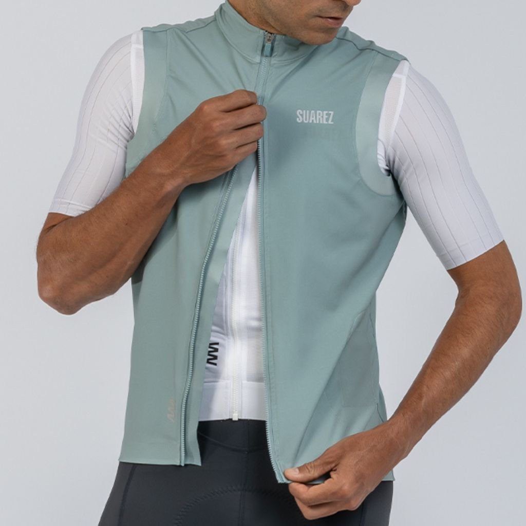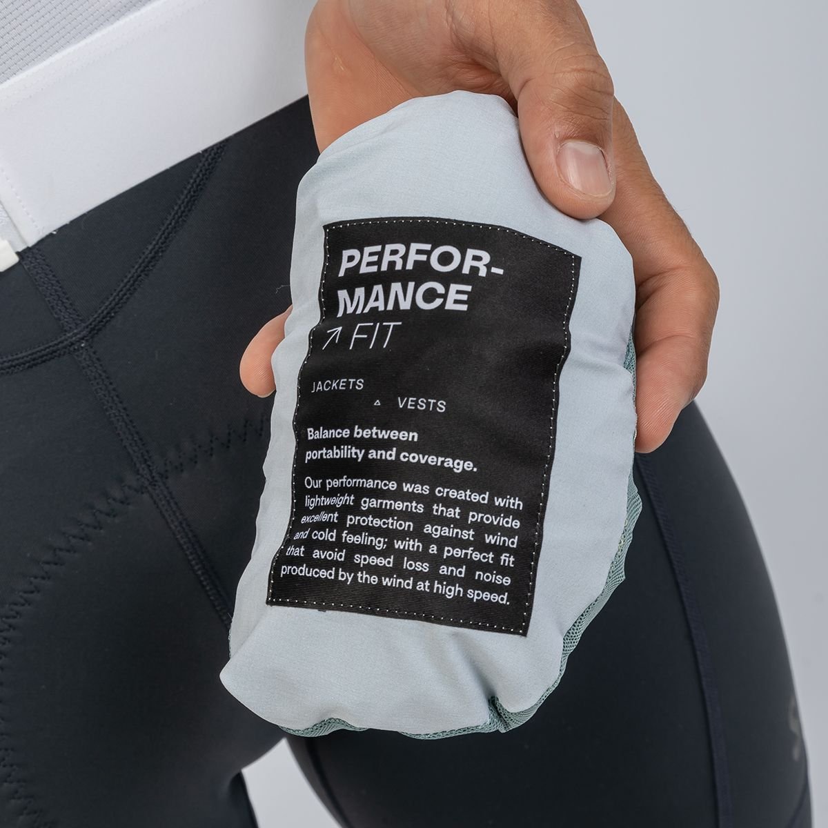 Acabamento termo selado e grip antiderrapante que mantêm o colete no lugar sem atrapalhar a pedalada.