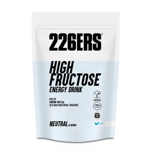 HIGH FRUCTOSE ENERGY DRINK aporta 87 g de hidratos de carbono e 500 mg de sódio por porção (90g) provenientes da maltodextrina e da frutose, numa proporção de 10:8.