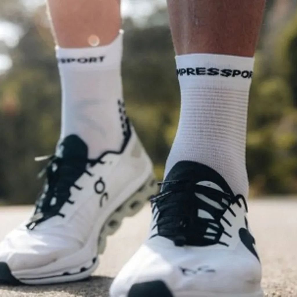 Meia Compressport - RUN V4 - Branca/Preta - Quarter