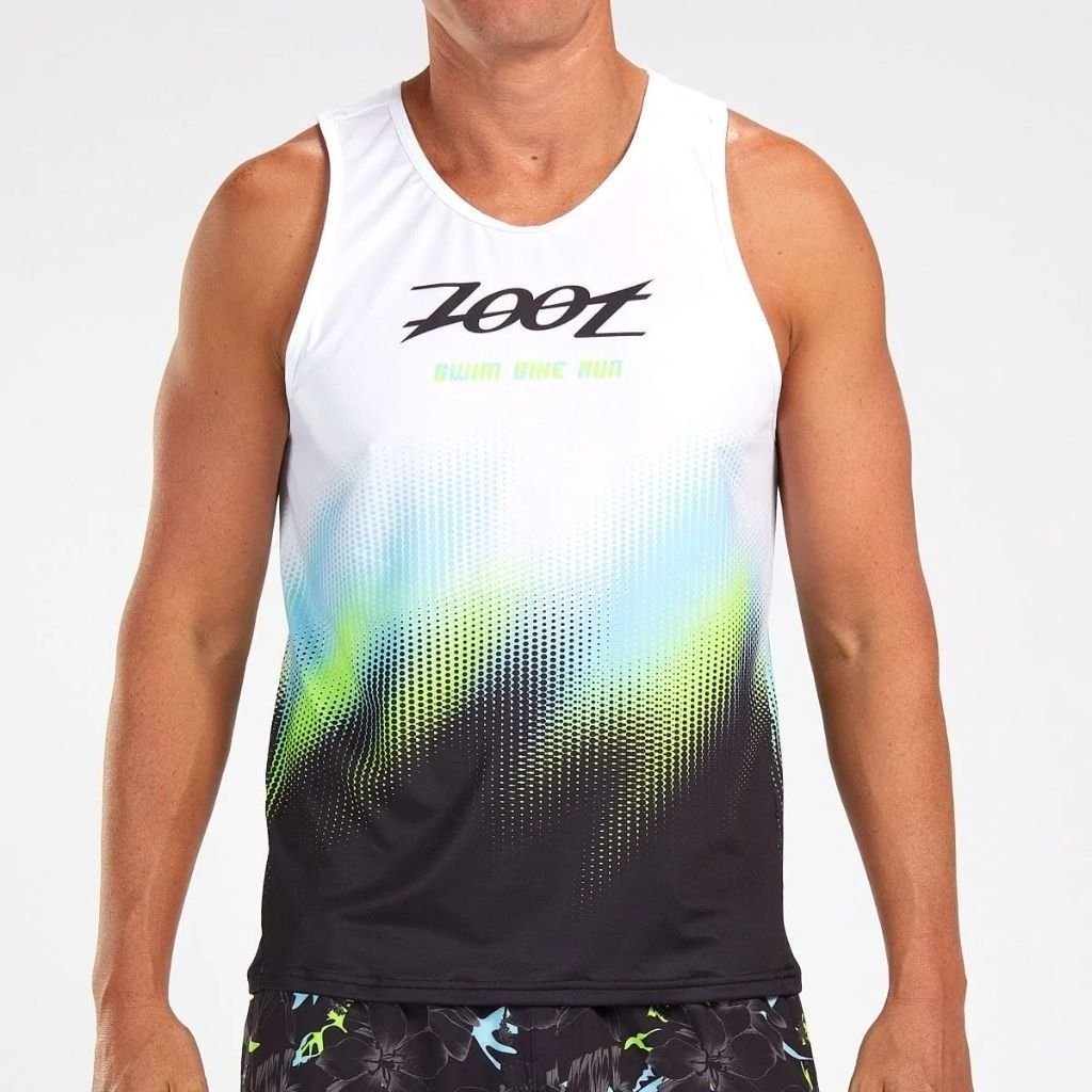 Projetado para função e desempenho, a regata de corrida Zoot - Live Aloha oferece uma impressão interna de xilitol Chillout que reage com a umidade e o ar para mantê-lo fresco enquanto você corre. Projetado com cavas largas, ele permite que você se mova livremente e oferece respirabilidade para mantê-lo confortável durante a corrida.